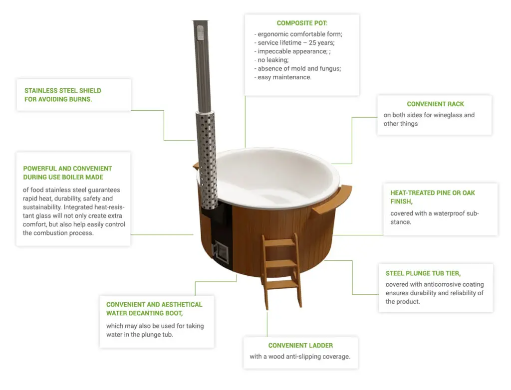 Browse through our website to find just the wooden burning hot tub Canada you need!