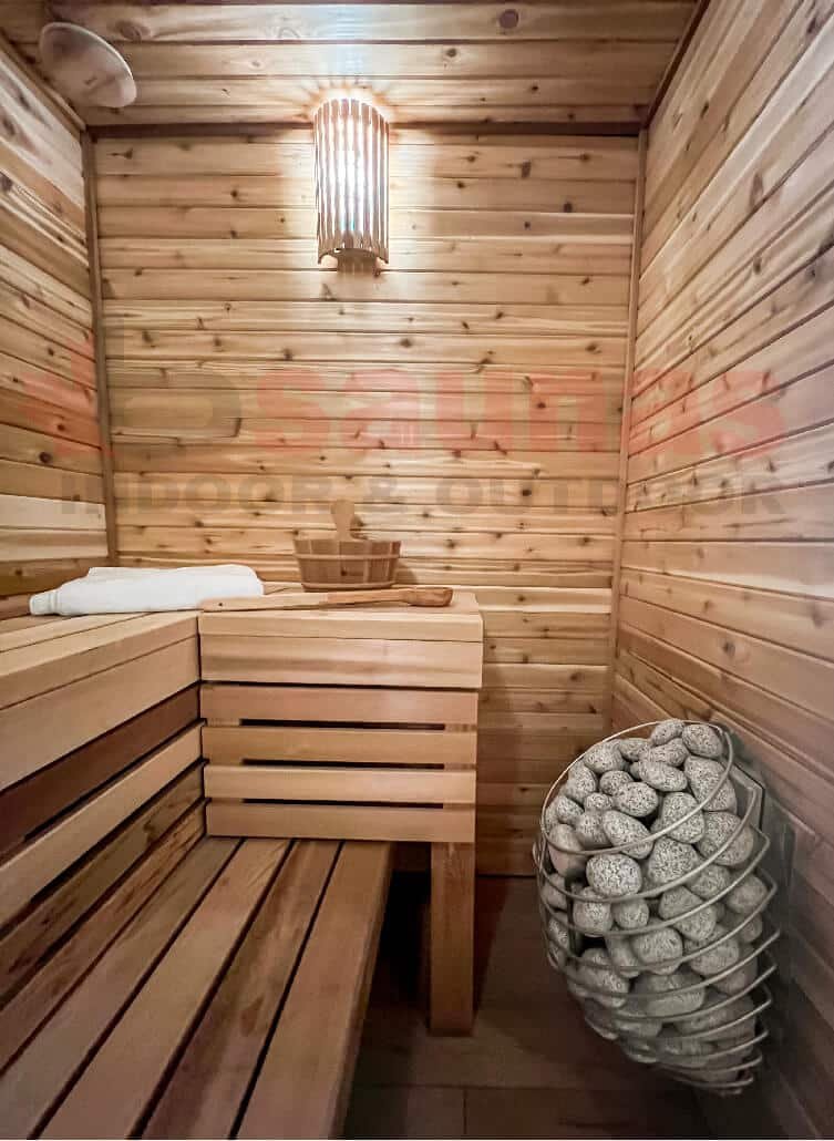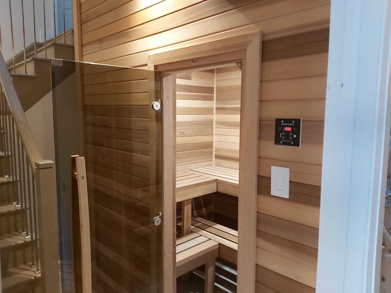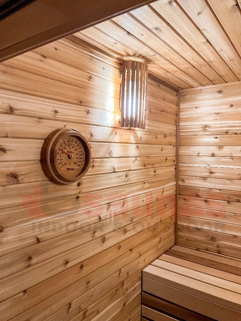 You can either order pre-fab indoor saunas or have one customized according to your home settings. We recommend either clear Canadian Red Western Cedar or Knotty Canadian Red Western Cedar saunas as favourites.