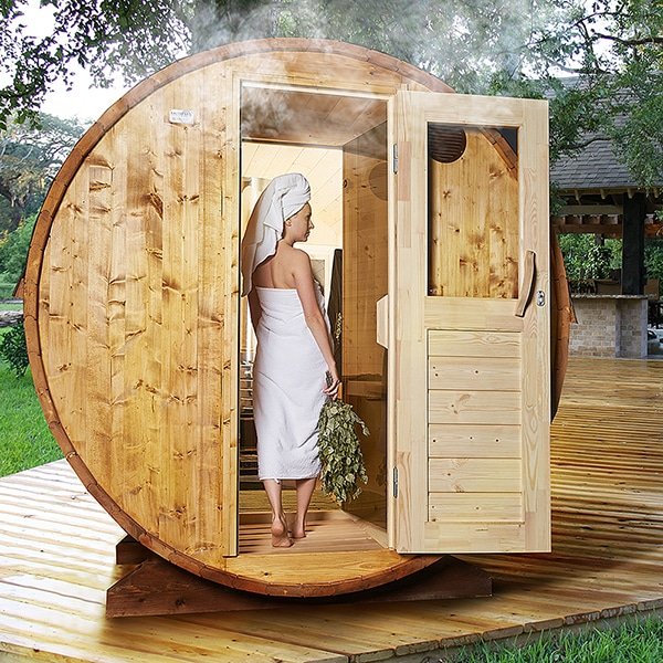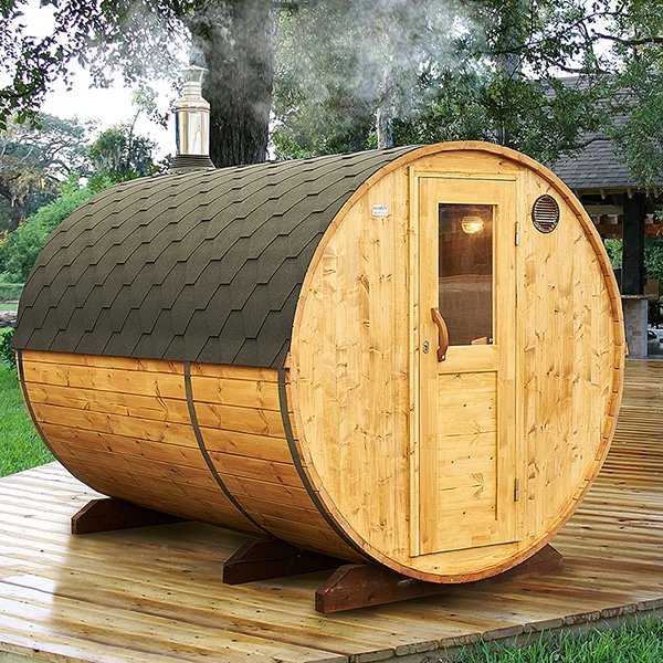 The compactness, functionality, and mobility of our 3 meters long 4 person Outdoor Barrel Sauna with Changing Room (S3P) will give you unlimited freedom to choose where it perfectly fits in your backyard or outdoor space! Price includes the Barrel Sauna Kit only. You are welcome to choose from a wide variety of our Electric or Wood Burning Heaters which will be perfect in your Barrel Sauna.