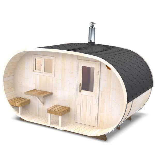 4 meter wide - 4 person Oval Outdoor Sauna with Change Room and Porch (S242V)
