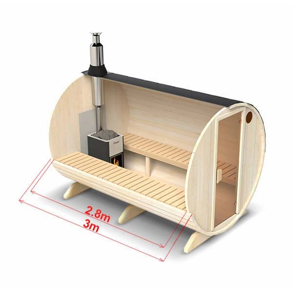 3 meter long - 6 person Outdoor Barrel Sauna (S3)