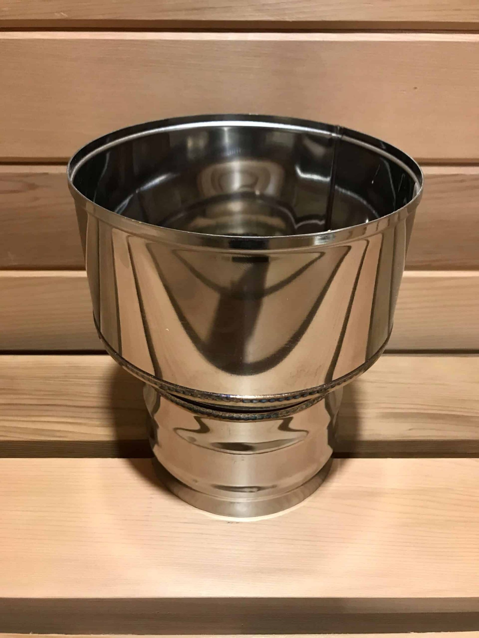 A sauna stove chimney pipe adapter is a type of connector or transition piece that is used to connect a wood stove or other type of heating appliance to a chimney flue or vent pipe. It is typically made of metal, such as stainless steel or galvanized steel, and is designed to fit securely around the end of the stove’s flue pipe and the beginning of the chimney flue or vent pipe. The purpose of the adapter is to provide a seamless transition between the two pipes, ensuring that exhaust gases and other combustion by-products are safely and efficiently vented out. Stove chimney pipe adapters come in a variety of sizes and shapes to fit different types of stoves and chimneys, and may also include features such as insulation to reduce heat loss and improve the performance of the sauna stove. It is important to ensure that the adapter is properly sized and installed in accordance with the manufacturer’s instructions and local building codes to ensure the safe and efficient operation of the sauna heater.