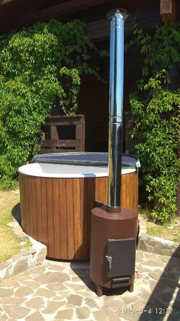 Classic Round Polar Spa Tub with Liner and Freestanding Wood Burning Stove