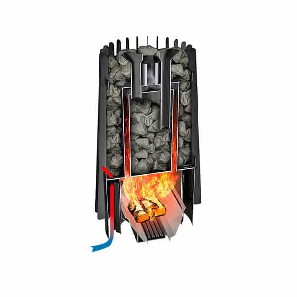 Cometa 180 Short wood-burning heater is perfect for any medium to the large sauna! Cometa heaters are so simple, yet so powerful and sophisticated. Firewood is loaded from the inside of the sauna, so you can watch the flame of the fire while enjoying the nice heat at the same time!
