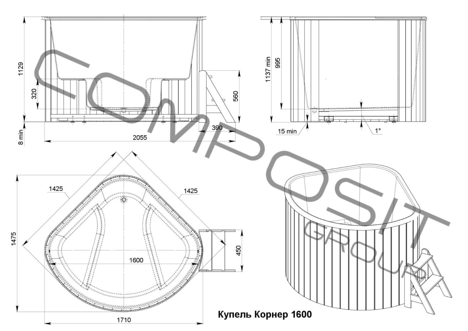 When used outdoors, it is recommended to additionally equip the plunge tub with an outer water-heating solid-fueled boiler with a capacity of 25 or 45 kW.