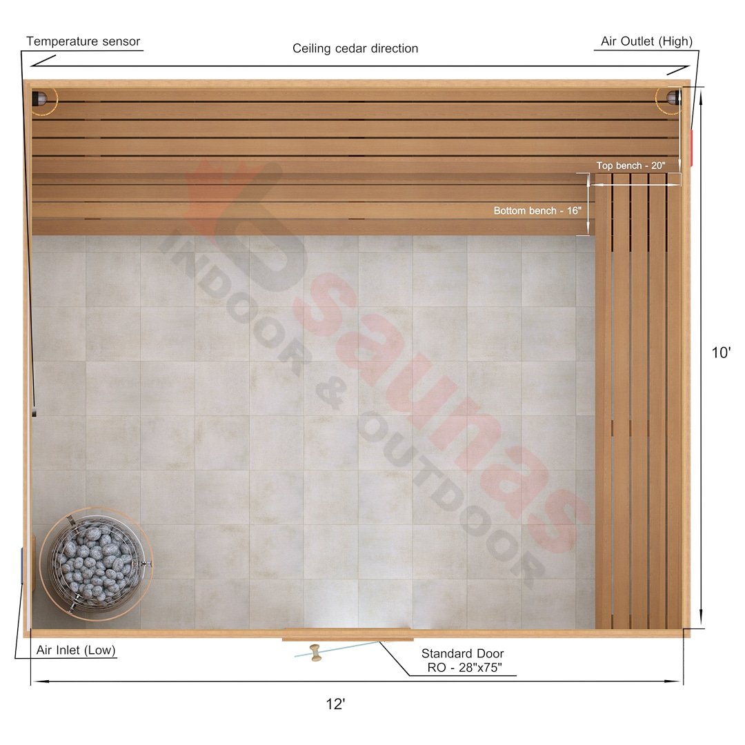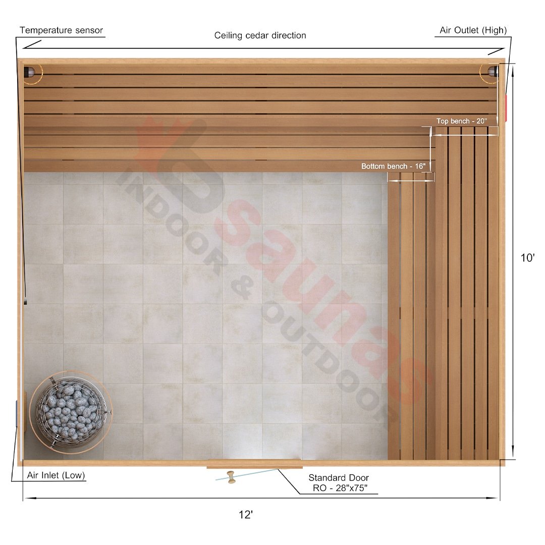 10x12x7 Custom Indoor Cedar Sauna Kit