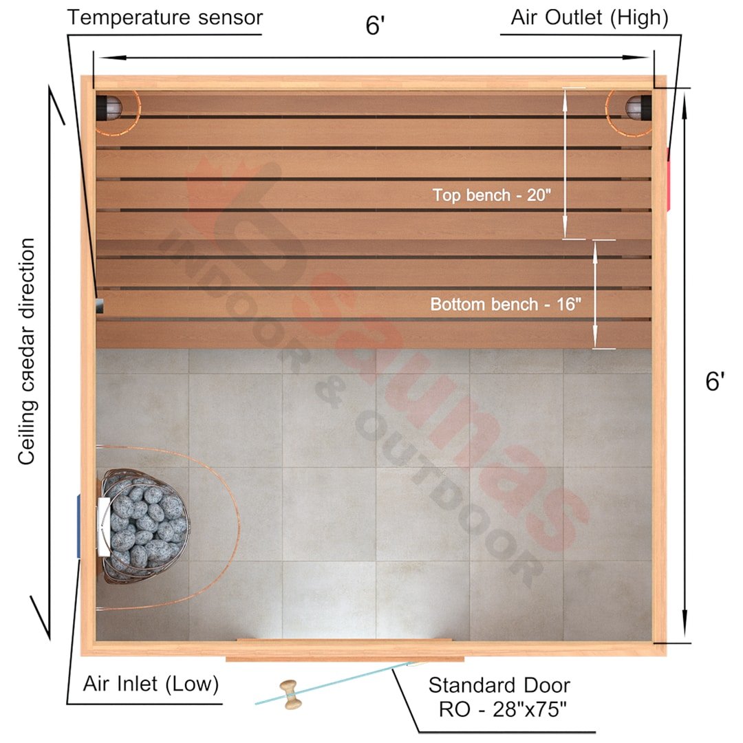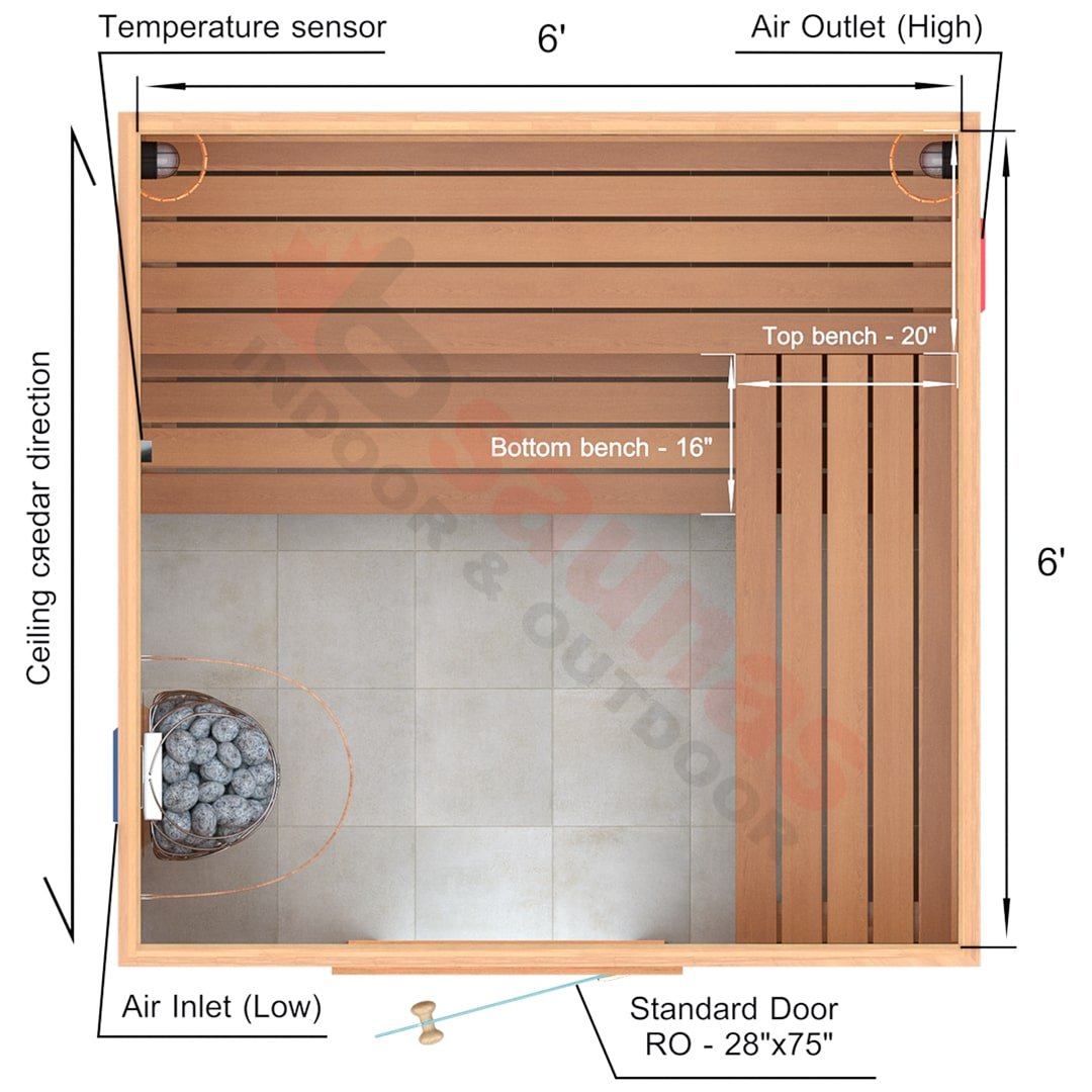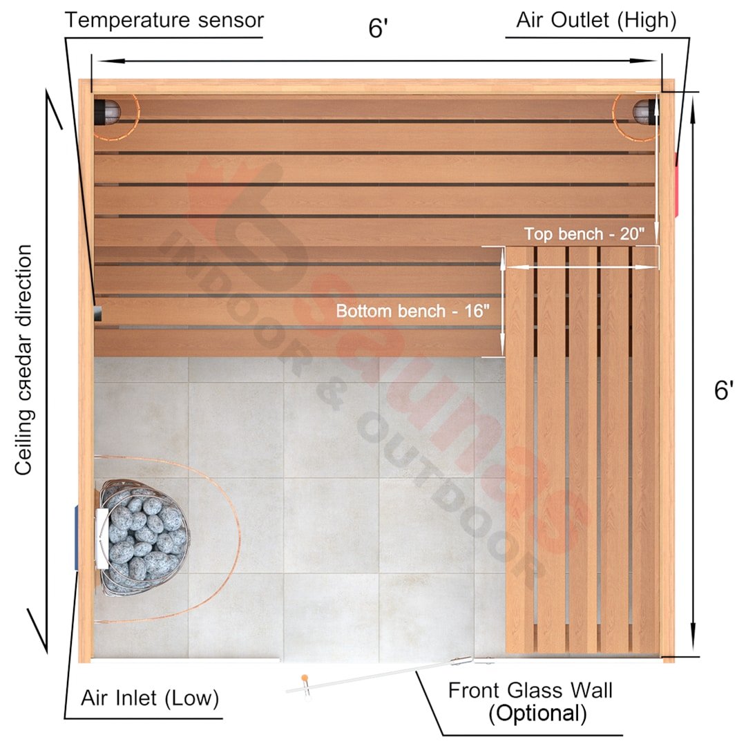 6x6x7 Custom Indoor Cedar Sauna Kit
