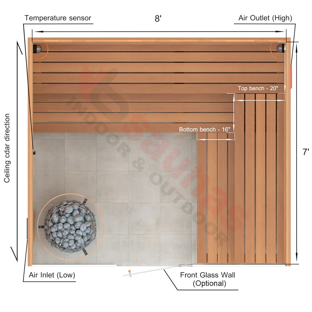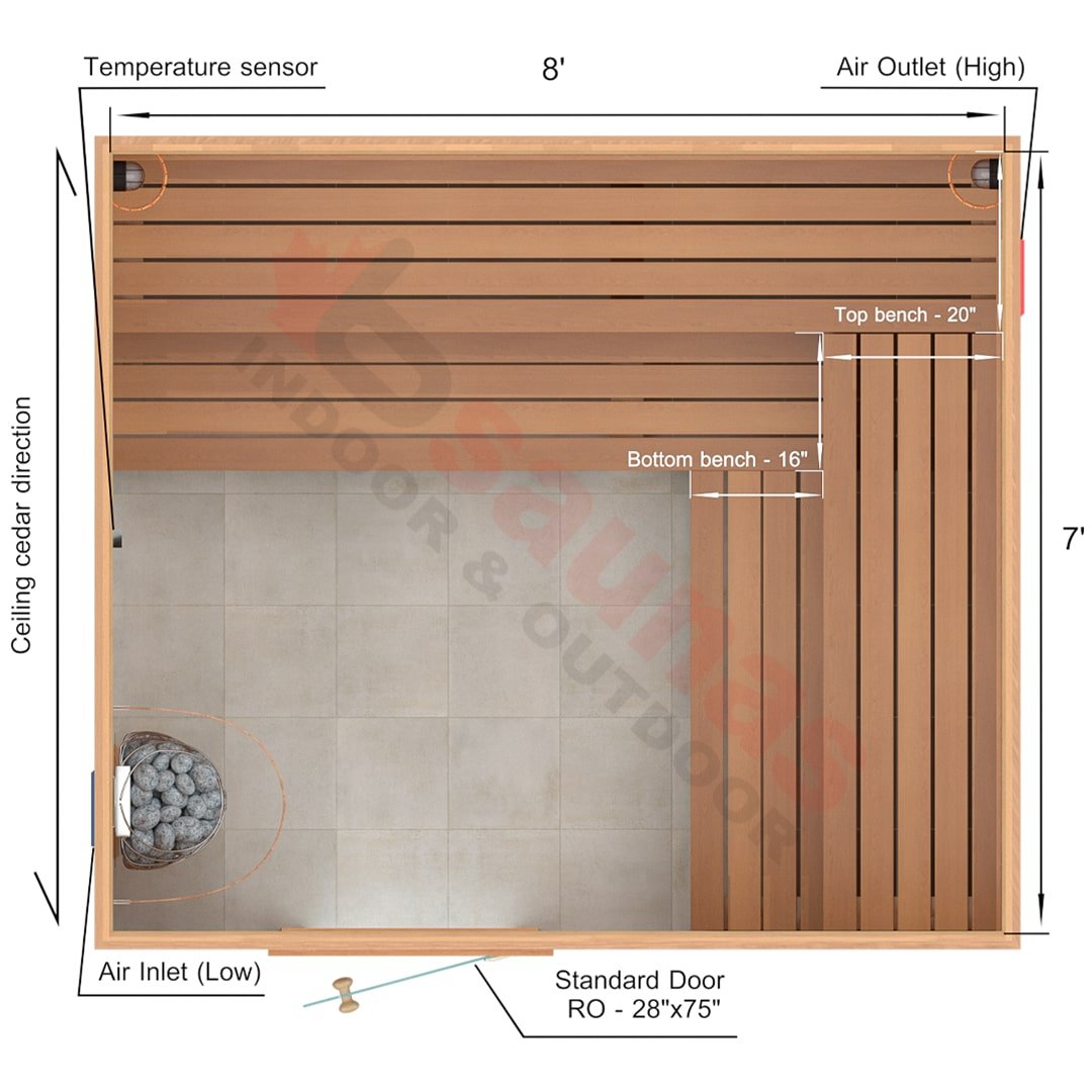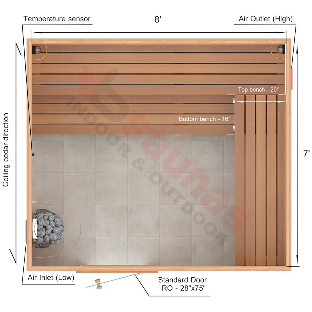 7x8x7 Custom Indoor Cedar Sauna Kit
