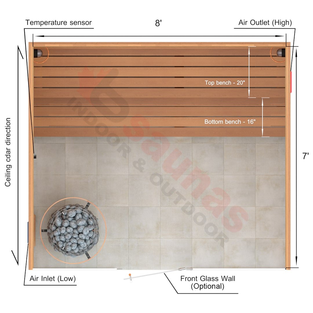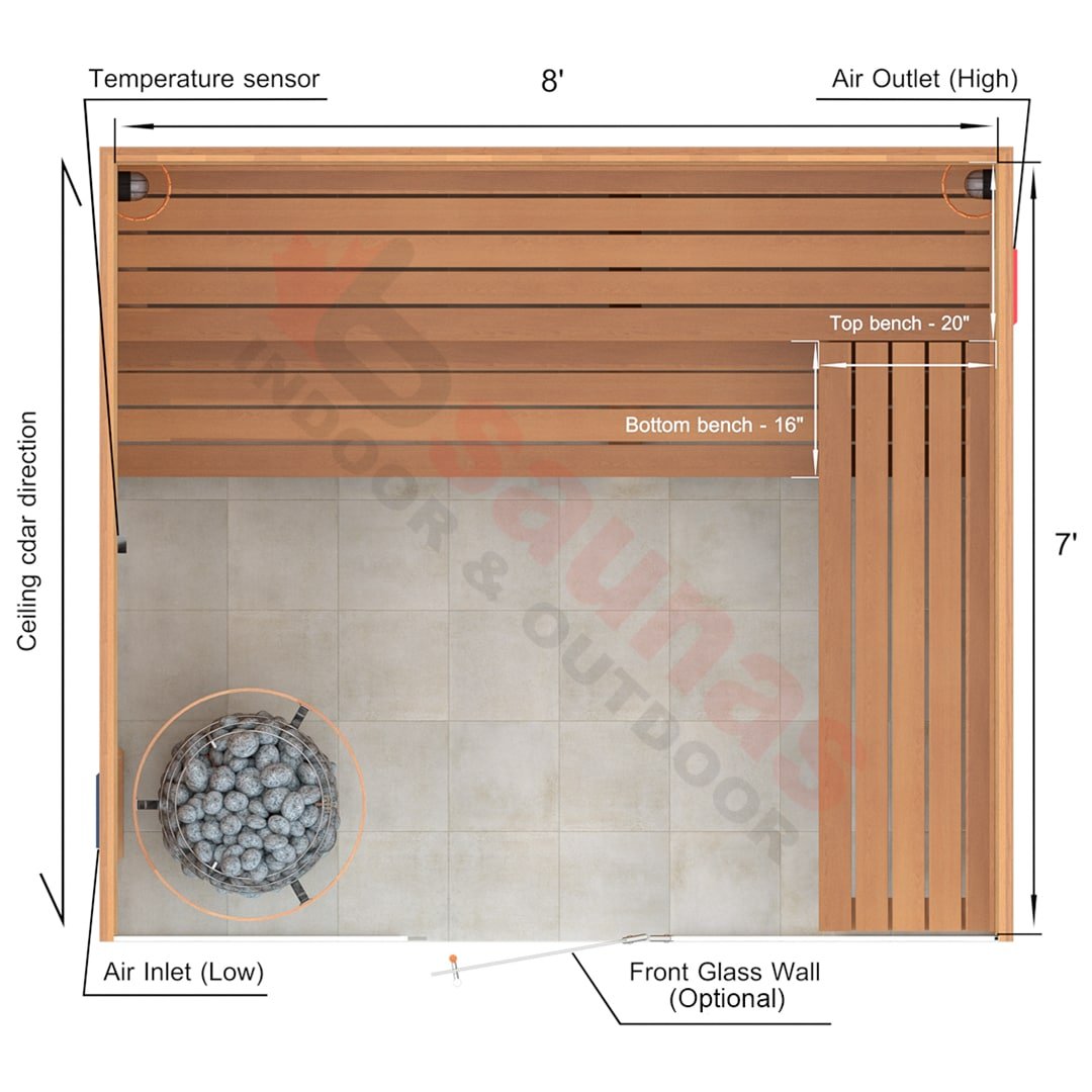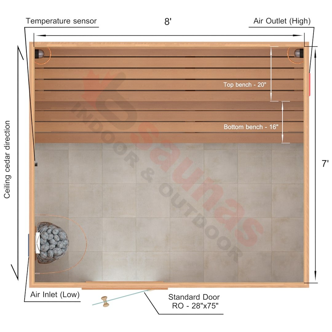 7x8x7 Custom Indoor Cedar Sauna Kit