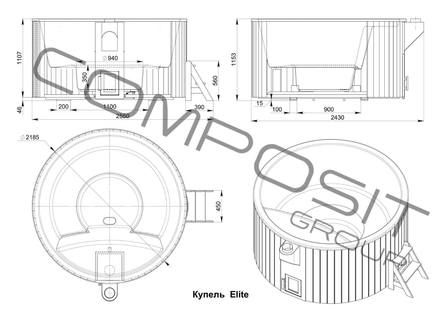 The composite plunge tubs of the “Elite” series are an innovative model, the concept and features of which allow to significantly accelerate the water heating process and to heat the boiler conveniently and safely.