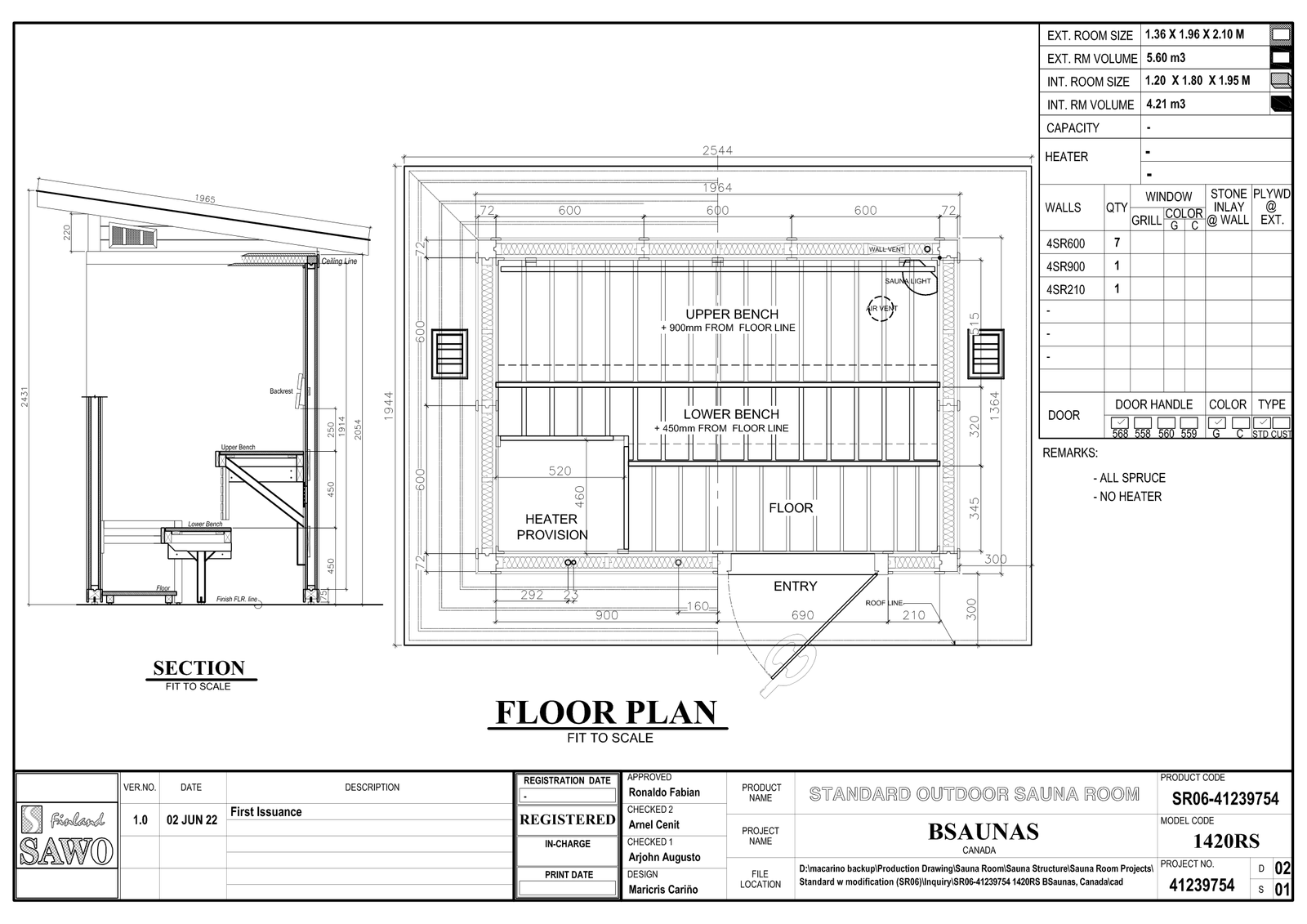 1420 RS/LS Western Red Clear Cedar Outdoor Prefab Sauna