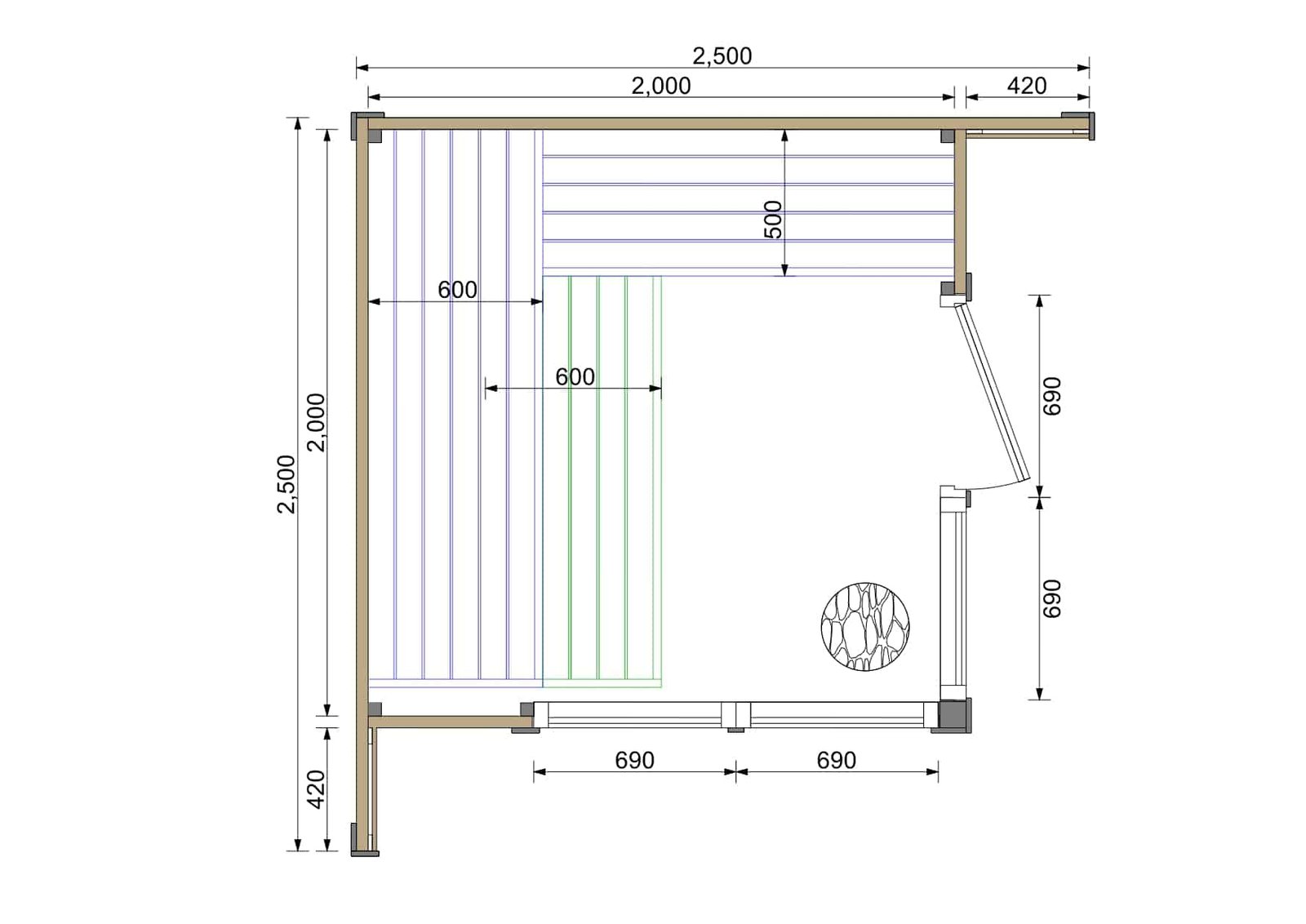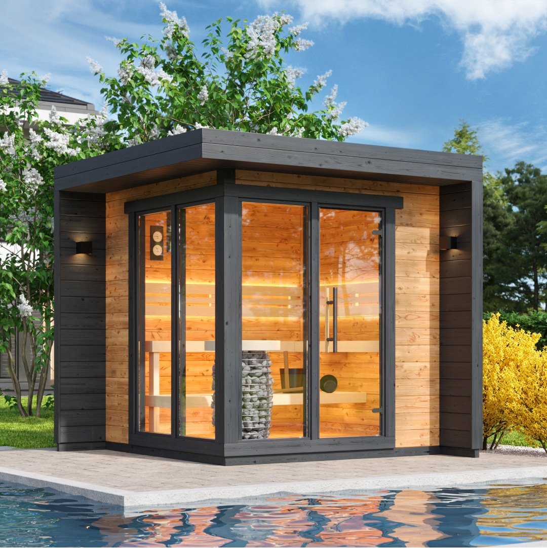 Patio S outdoor prefab sauna is typically installed in a backyard, or any other outdoor space in Canada and the USA. “Prefab”, or “prefabricated” saunas are manufactured in sections/parts, and shipped to the installation site in a nicely packaged crate. The word “prefabricated” refers to factory-made components that are pre-made, and ready to be assembled according to an instruction manual. This makes these saunas much easier to install than traditional saunas. Traditional saunas require custom construction on-site (framing, insulating, etc), which can be costly and time-consuming. Patio S outdoor prefab sauna kits are made from cedar or spruce and are designed to be weather-resistant. They come with your choice of either a wood burning or electric stove, a ventilation system, benches for the sitting area, and most commonly a change room as well. Outdoor prefabricated saunas are a popular choice for people in Canada and the US who want to enjoy the benefits of sauna therapy in their own backyard. Our “Patio” models are easily assembled, making them a convenient and portable option for those who do not have a lot of space. We offer a professional installation service that is available upon your request and is quoted depending on the location of installation and size of the unit.